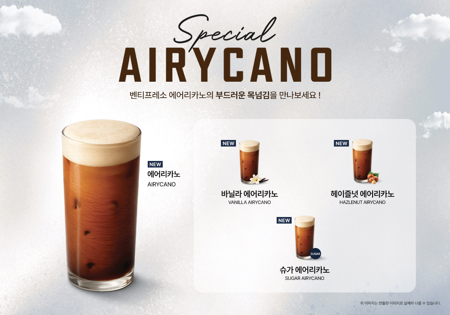 총 4가지 종류로 즐길 수 있는 에어리카노!